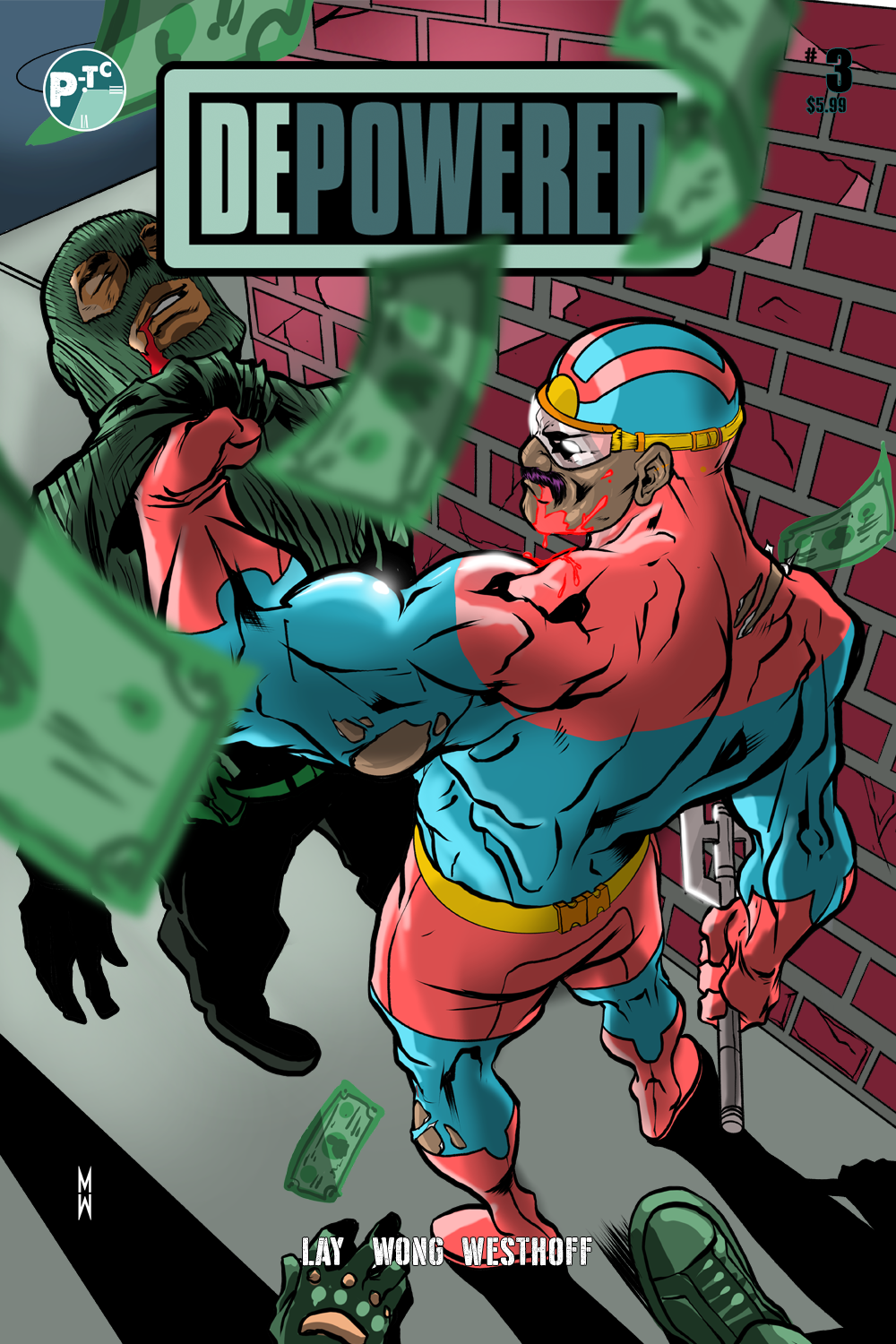 Depowered is the story of mediocre superhero, Daxx, now turned mediocre everything, and his struggles post-powers. A regular at the super-hero conventions, and an even bigger regular at the post show "barcon", Daxx is trying to promote his book and make a living. A particularly bad hometown show has him searching his past mistakes to see if he can ever recover.